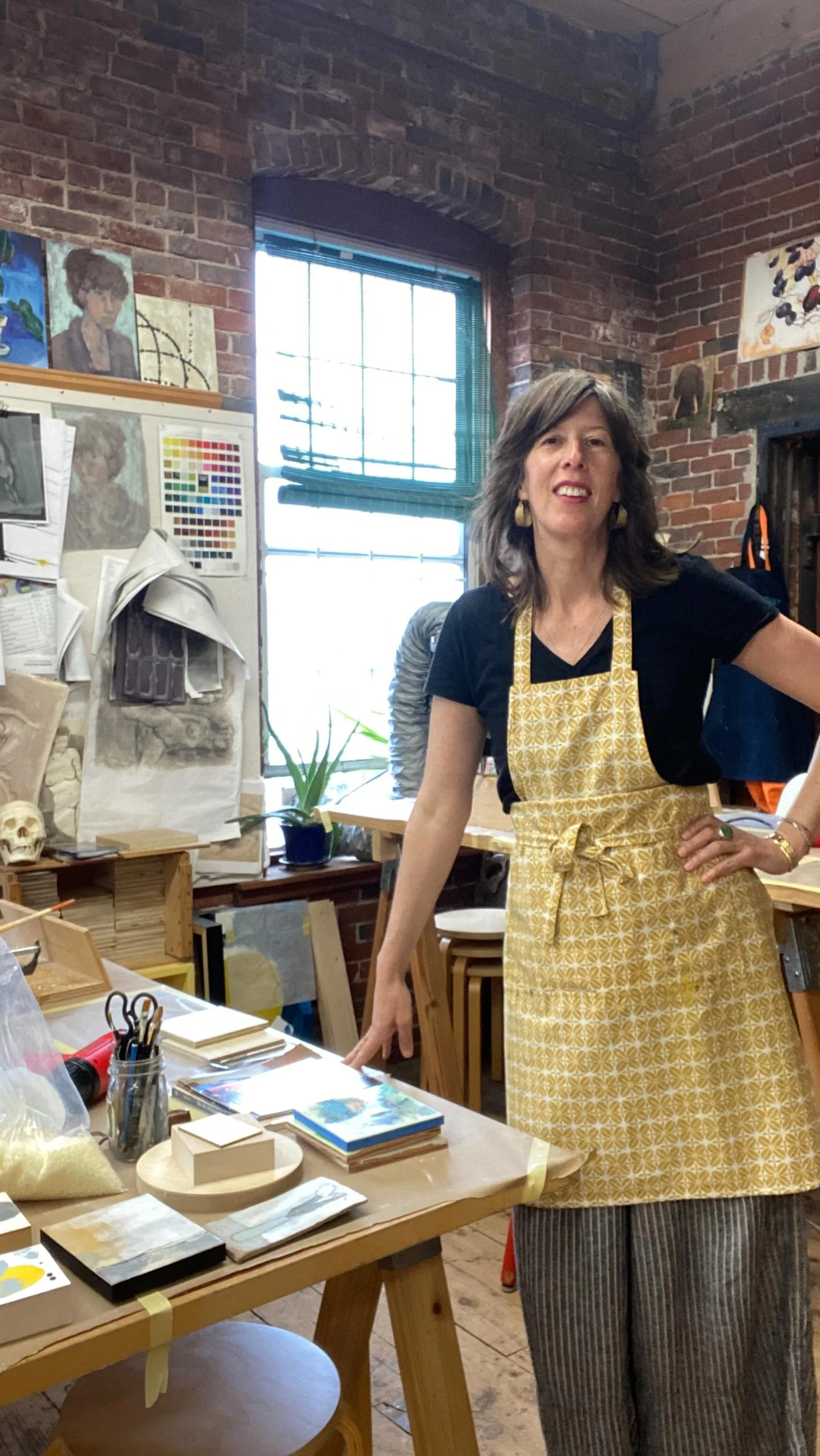 Amy’s studio is part of The Artists’ Muse, a collective of artists + designers in a brick mill building in the heart of Amesbury, Massachusetts. There are 10 professional artists in 8 studio spaces, who work in a variety of mediums including: oil, acrylic, photography, watercolor, fiber, pastel, encaustic, charcoal + metal. Many of the artist offer private and group lessons.